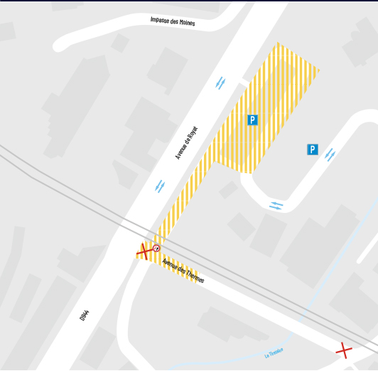 Travaux de réaménagement du parking et des stations de bus (les travaux sur les stations se poursuivront jusqu’en septembre 2025).