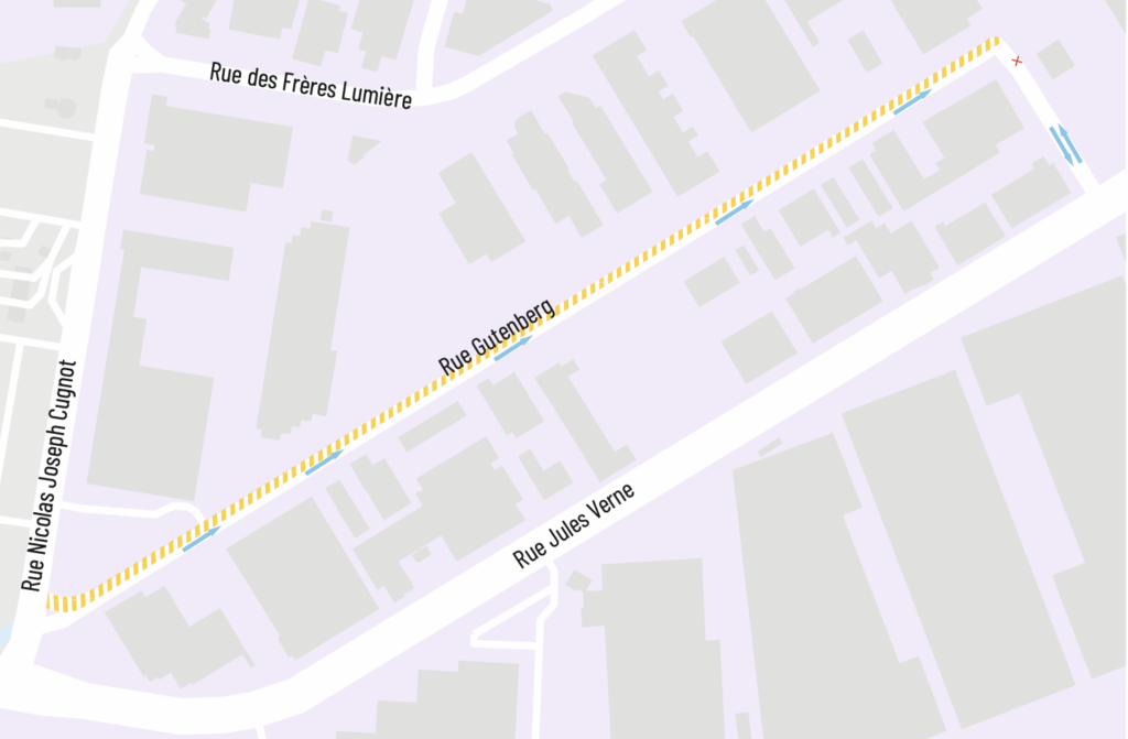 Après les travaux sur les réseaux secs en cours de finition, les travaux d’aménagement InspiRe ont démarré rue Gutenberg le 22/09.