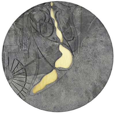 Halle aux blés – Fragment doré du lettrage « École des beaux-arts », illustrant les strates historiques du bâtiment.