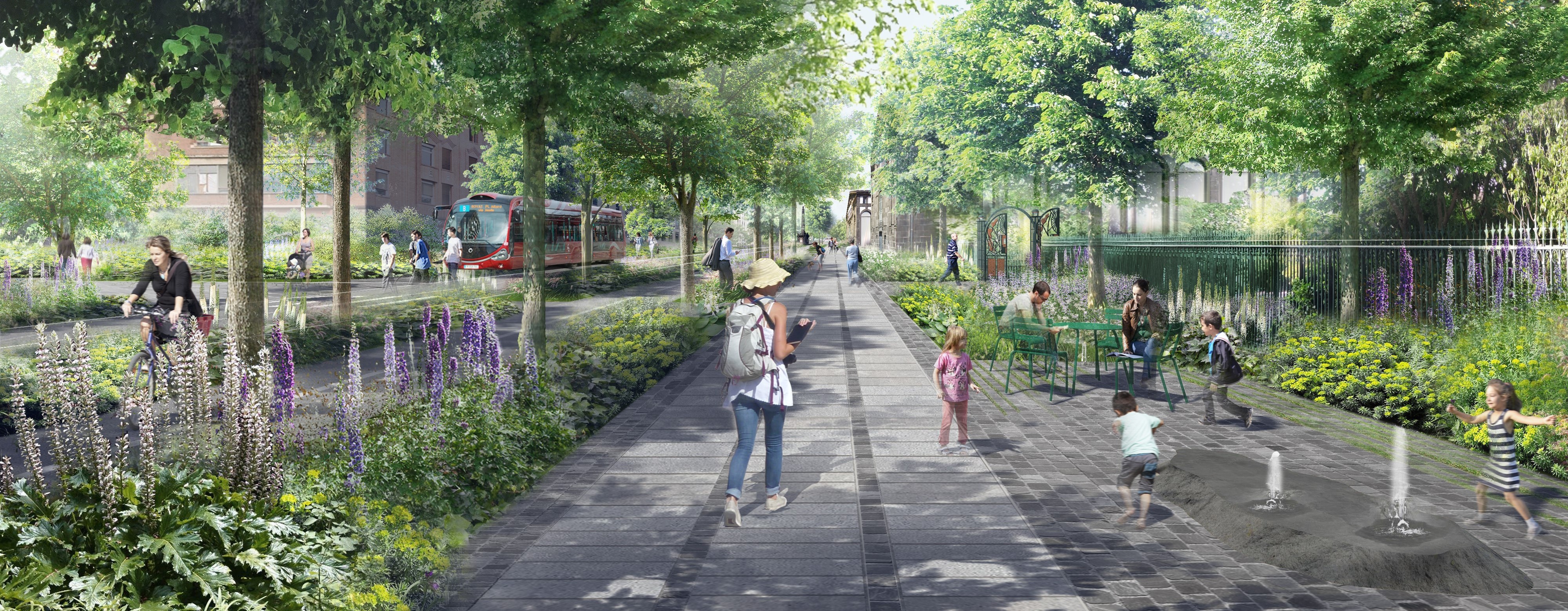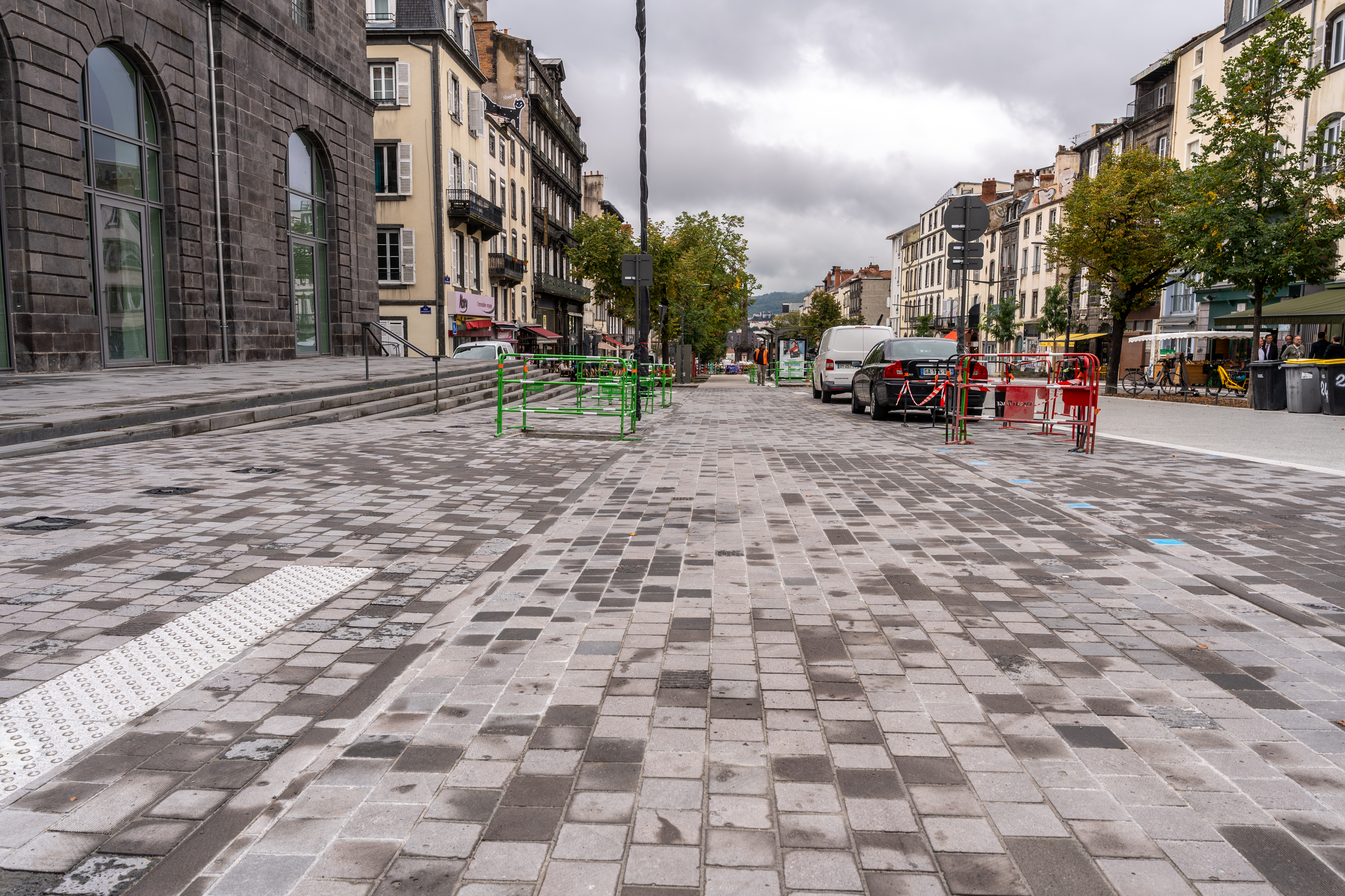 Outre l’aspect écologique et pratique, les Allées du cardo a une forte dimension patrimoniale. Des fouilles archéologiques réalisées en 2023-2024 ont révélé des trésors historiques, témoignant du passé riche de ce quartier. Entre vestiges d’anciennes églises et objets de toutes époques, ces découvertes renforcent le lien entre l’histoire de Clermont-Ferrand et son avenir. De plus, la pierre locale, la pierre de Bouzentès, une lave de couleur grise tirée des volcans proches, ainsi que de grandes dalles de granit clair du Tarn, ont été utilisées dans l’aménagement urbain. À cela s’ajoutent des fontaines, véritables balises culturelles, qui, par l’usage de la pierre volcanique, symbolisent la richesse patrimoniale de la région tout en apportant fraîcheur et sérénité.
