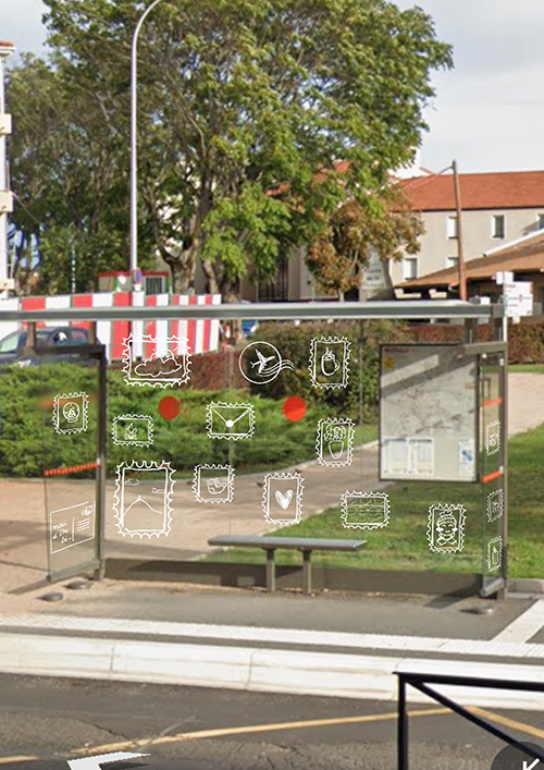 Les éditions jeunesse La Poule qui pond habillent un arrêt avec le travail de Fabienne Cinquin, illustratrice clermontoise issu du livre “Petit renard”. Un QR code invite à lire ses livres.