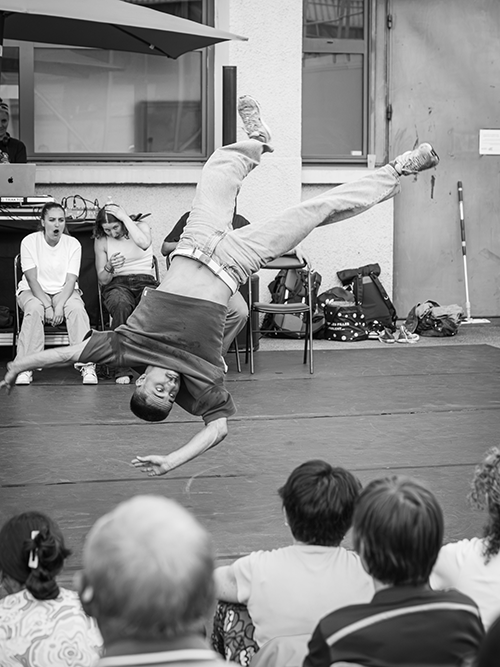 Variations de la pièce Exercice de style de Raymond Queneau entre danse contemporaine et improvisation, théâtre et breakdance.