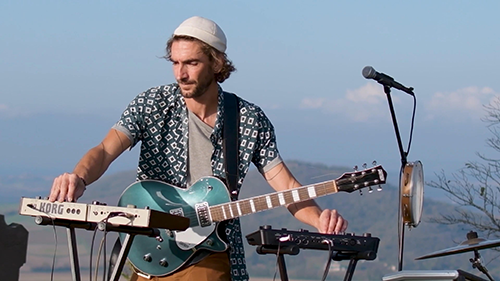 Avec ses synthés modulaires de poche et un violon électronique affublé de pédales en tous genres, Armoni devient la compagne de route des usagers d’un tram-bus pas comme les autres.